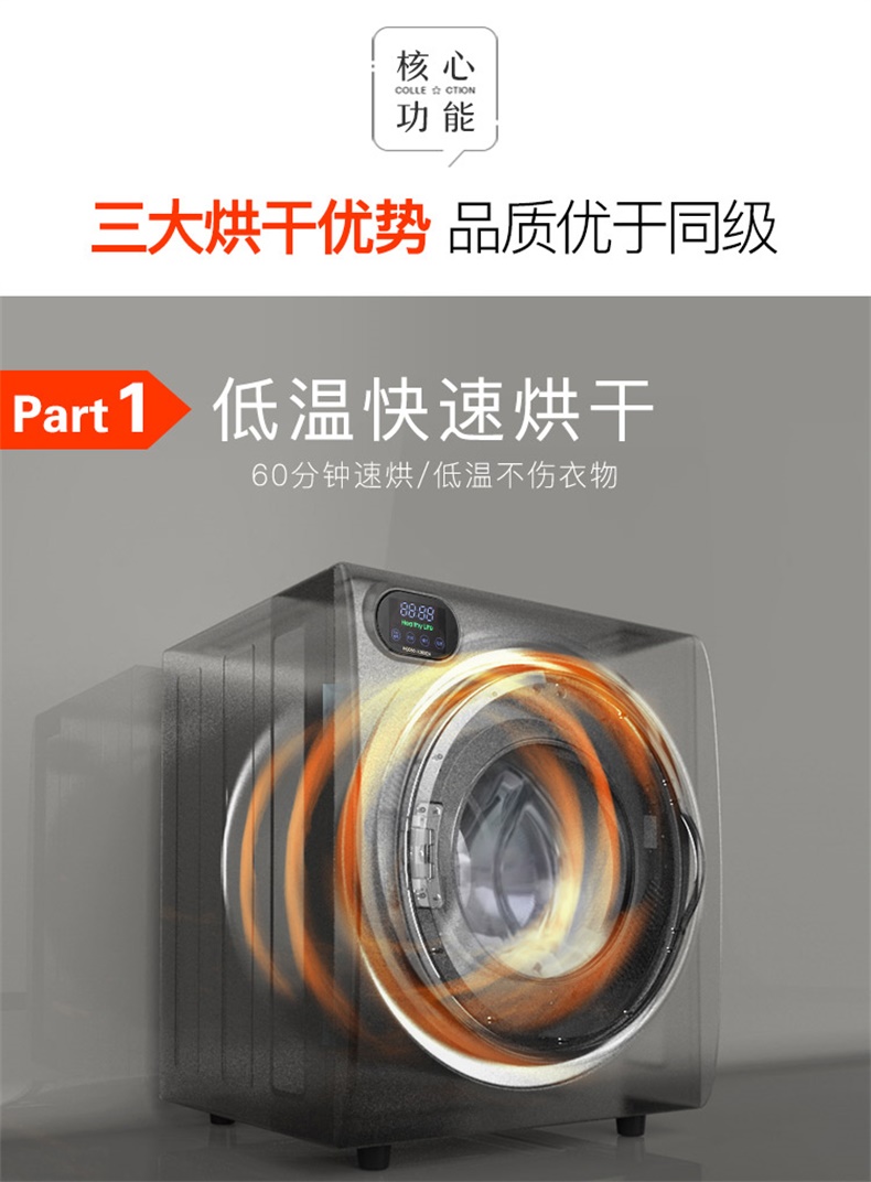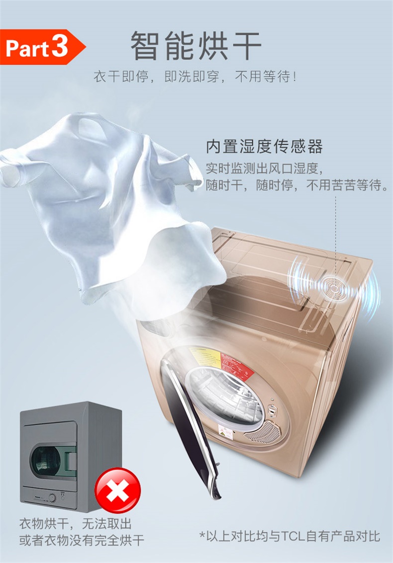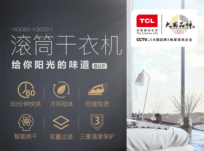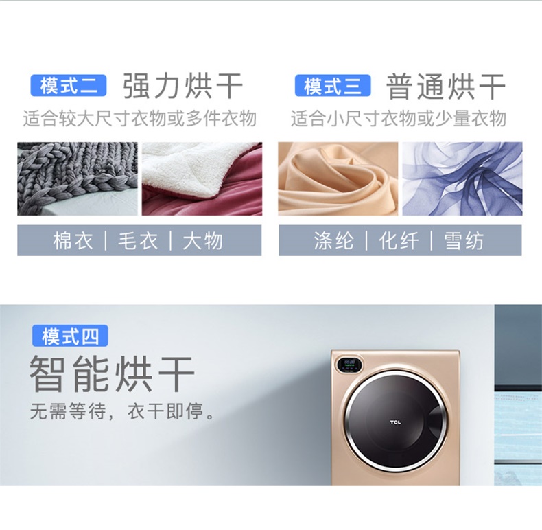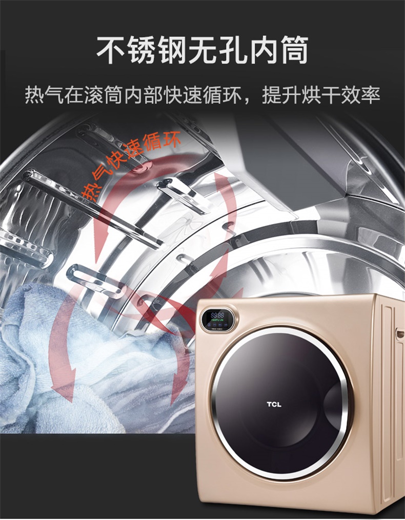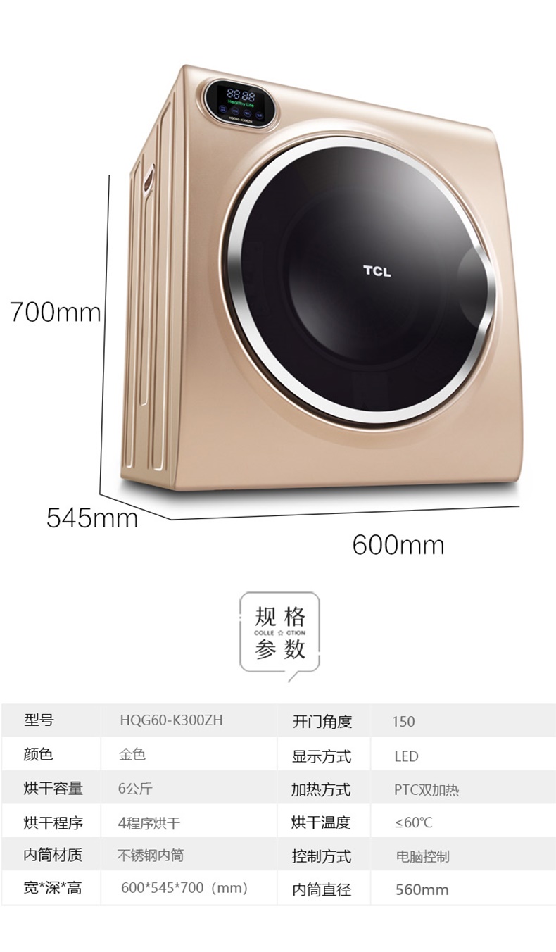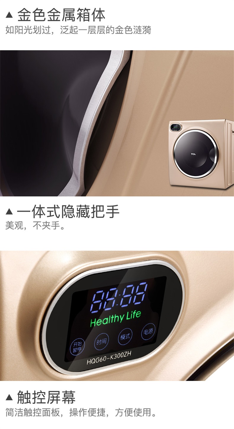 商品名称:TCL 6公斤滚筒干衣机快速烘干高温除菌防皱免烫 HQG60-K300ZH