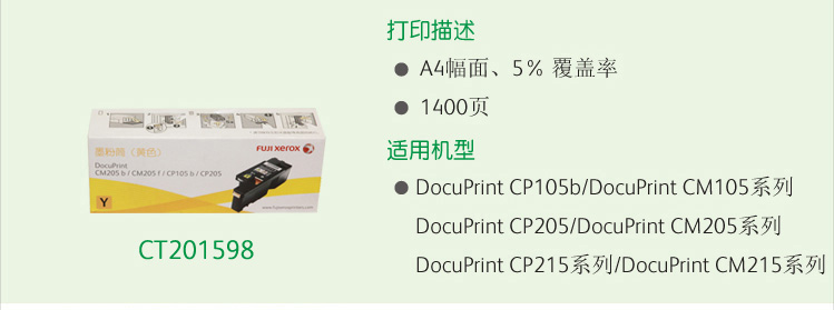 商品名称:富士施乐 CM205b/f/215b/f/fw/CP105b/205/215/215w原装黄色墨粉盒
