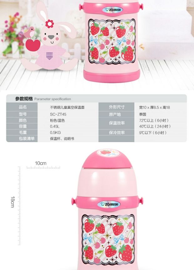 商品名称:象印 保温杯SC-ZT45儿童吸管保温杯保温壶450ml
