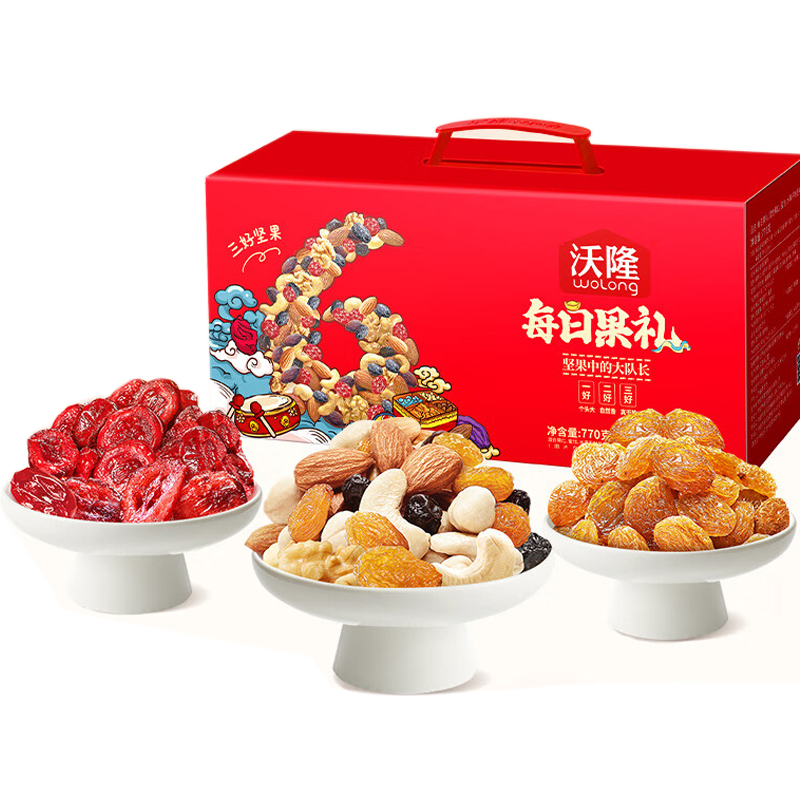 商品名称:沃隆 每日坚果770g/28袋小零食果干混合坚果礼盒即食休闲零食大礼包 单位:盒