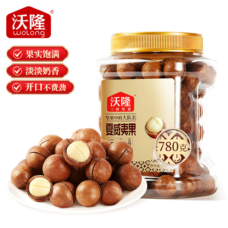 商品名称:沃隆 夏威夷果780g量贩罐装奶香味夏果坚果炒货办公室休闲零食小吃 单位:罐