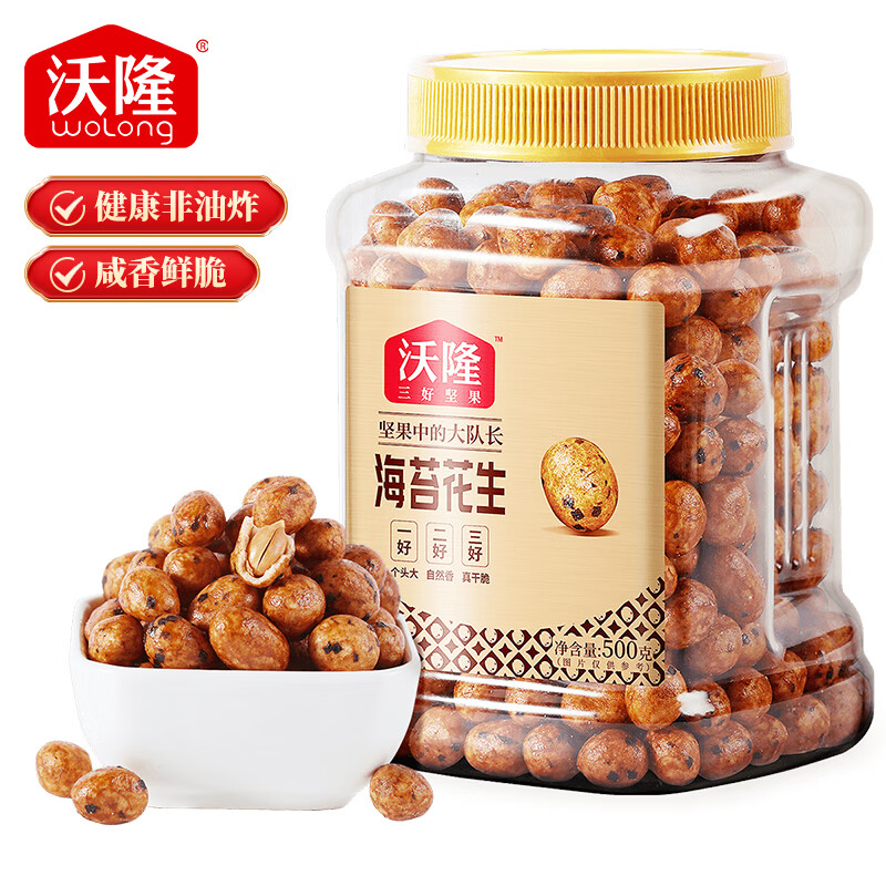 商品名称:沃隆 鱼皮花生500g海苔味罐装花生米休闲办公室零食下酒菜坚果小吃 单位:罐