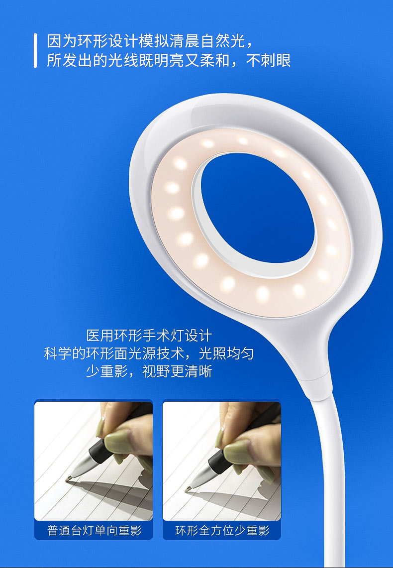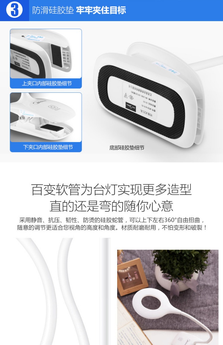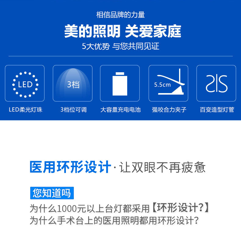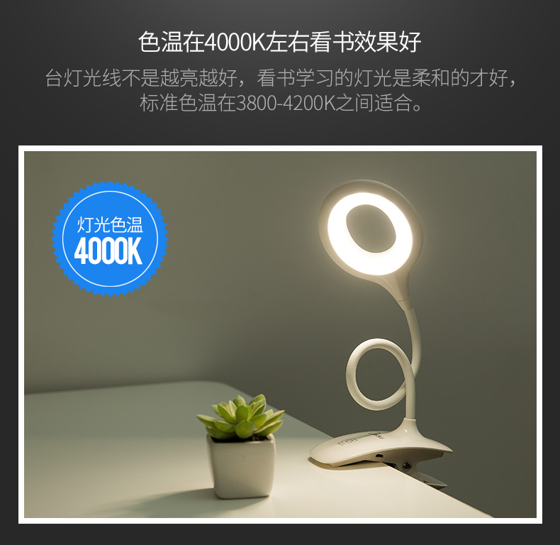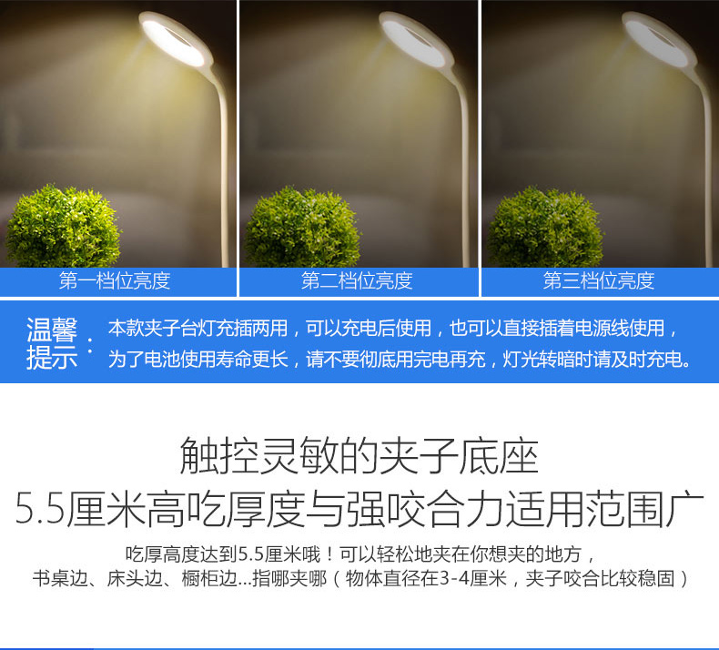 商品名称:美的 可充电式LED小台灯护眼书桌大学生宿舍卧室床头读书夹子夹式MTD3-MK-01