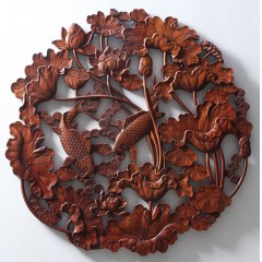国产 木雕挂件 香樟木头雕刻画工艺品中式客厅实木质艺术年年有余