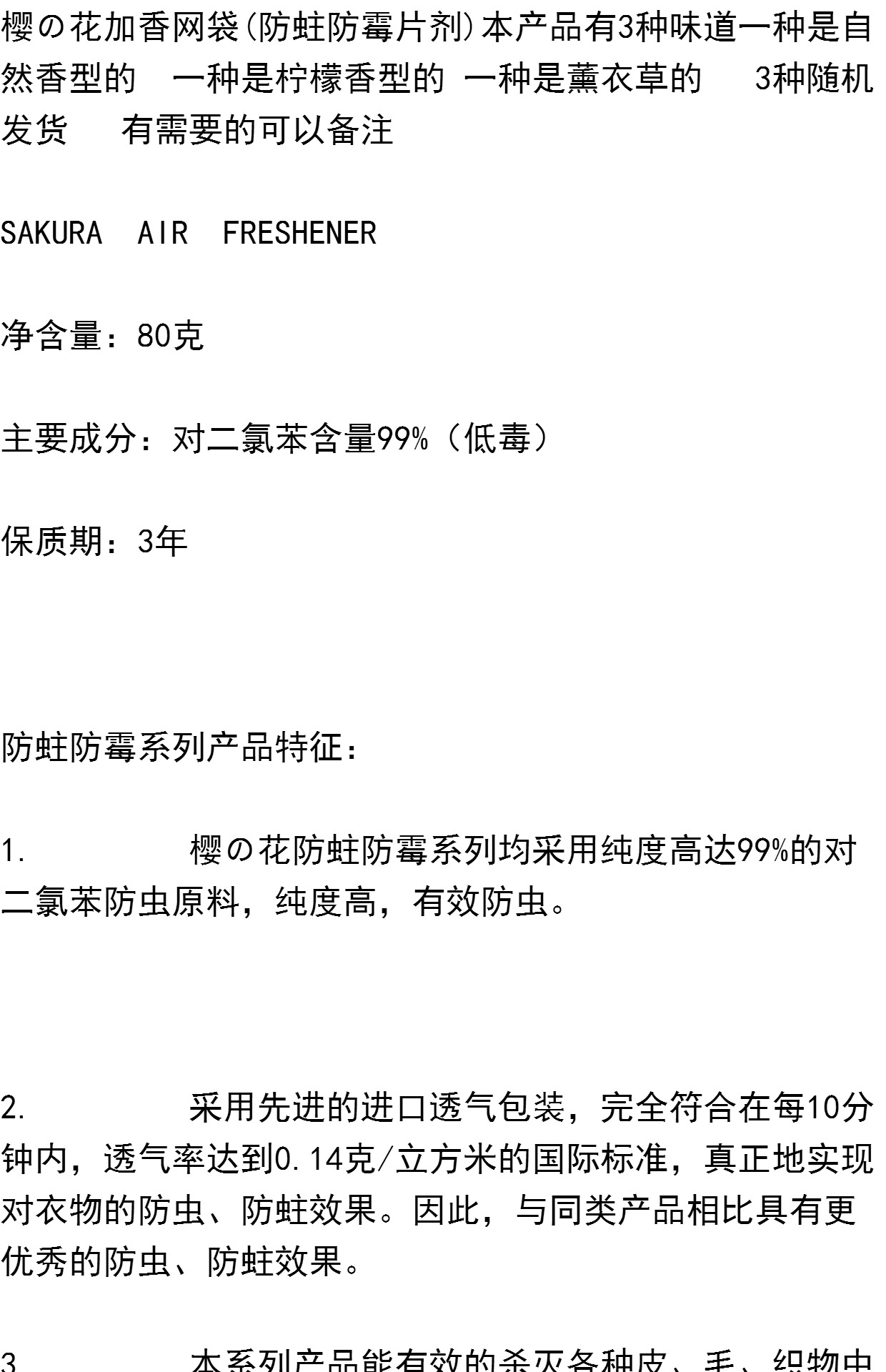 商品名称:樱之花防霉防蛀80g挂网防蛀防霉挂饼 多香型芳香网袋防霉