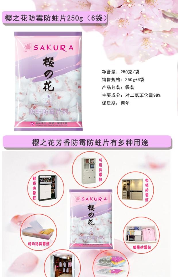 商品名称:樱之花 防霉防蛀片剂250gX6袋 衣柜樟脑丸防蛀防霉去味