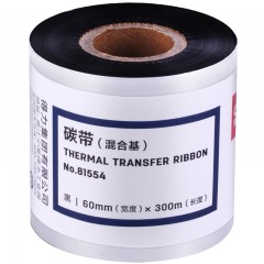 得力 51554 混合基碳带60mm*300m大管芯条码标签打印机耗材适用铜版纸合成纸PET纸PVC材质打印色带6cm宽黑碳带