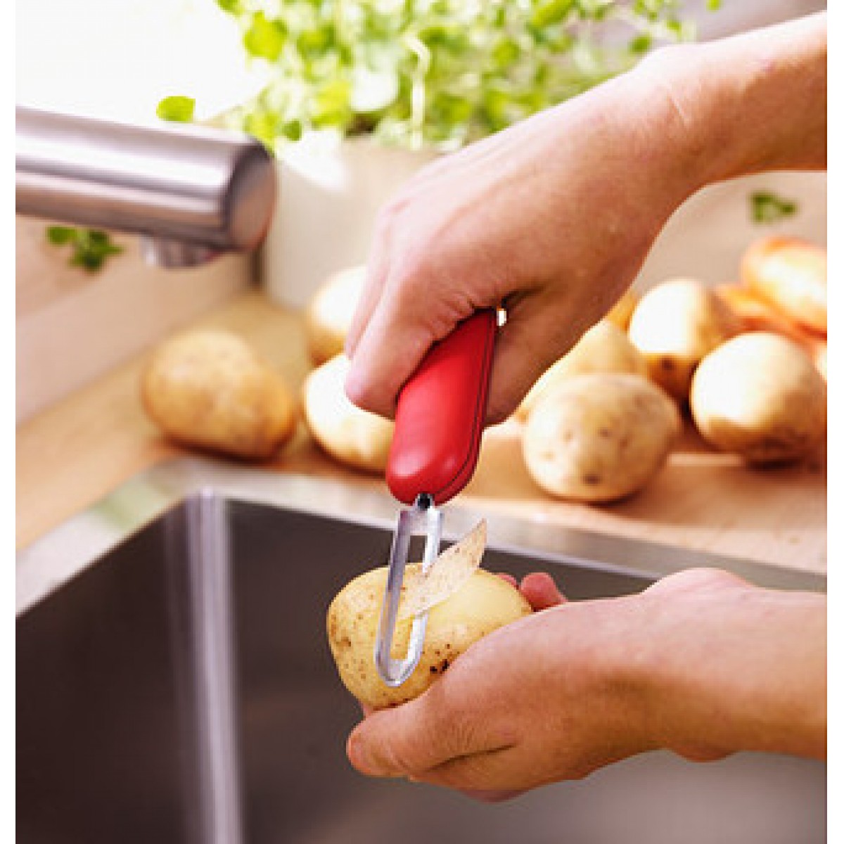 - 用锋利的边缘去除土豆上的疙瘩或腐坏的地方。