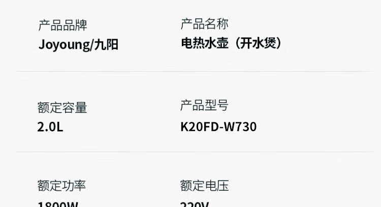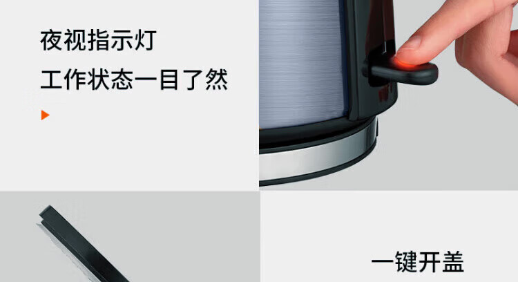 商品名称:九阳 电热水壶进口温控304不锈钢无缝内胆开水煲双层精钢保温防烫 K17FD-W6310 1.7L