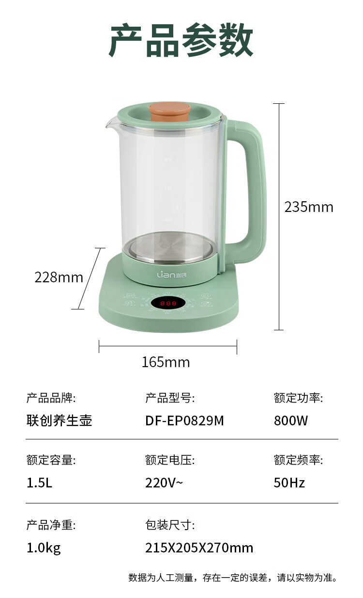 商品名称:联创 花茶壶烧水壶养生壶DF-EP0829M