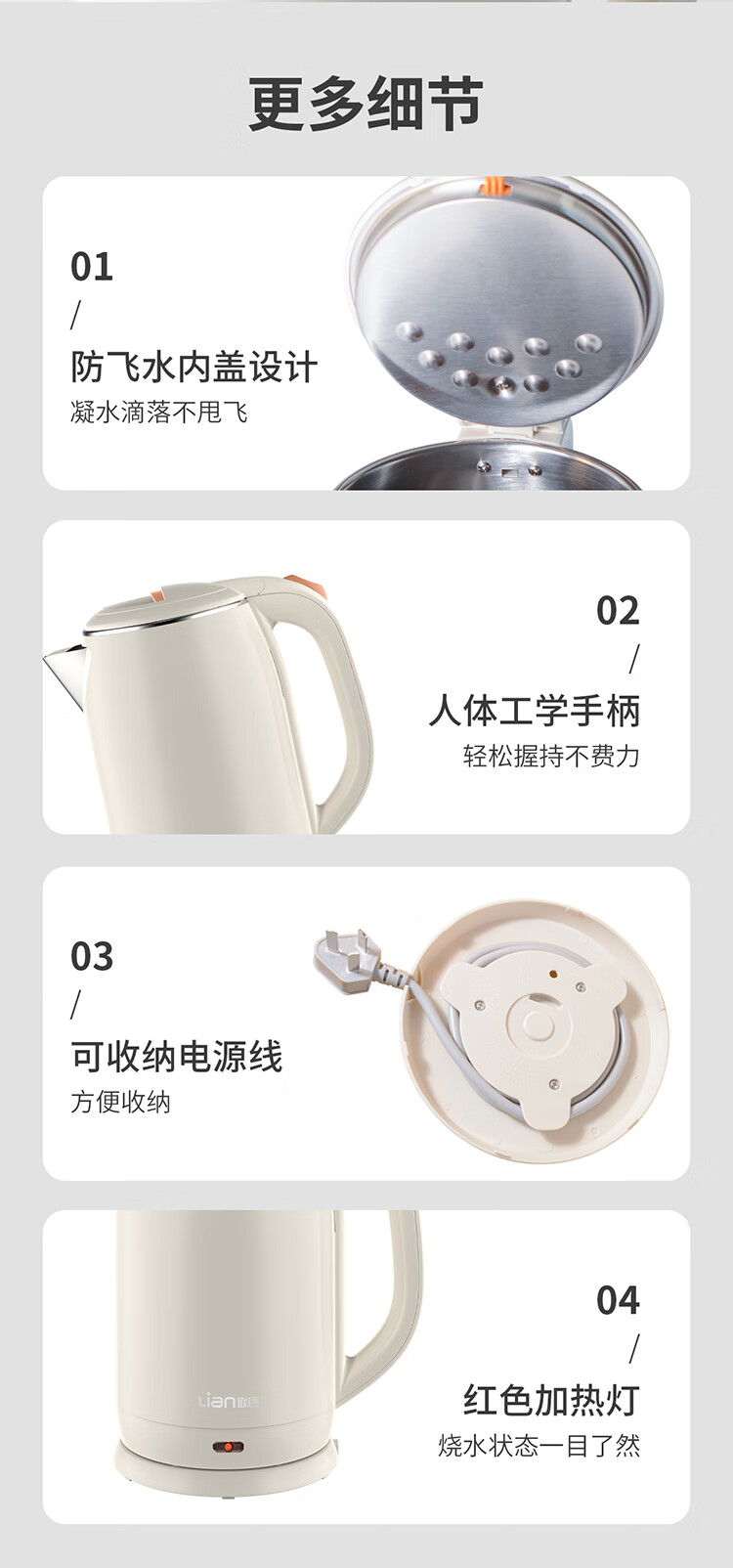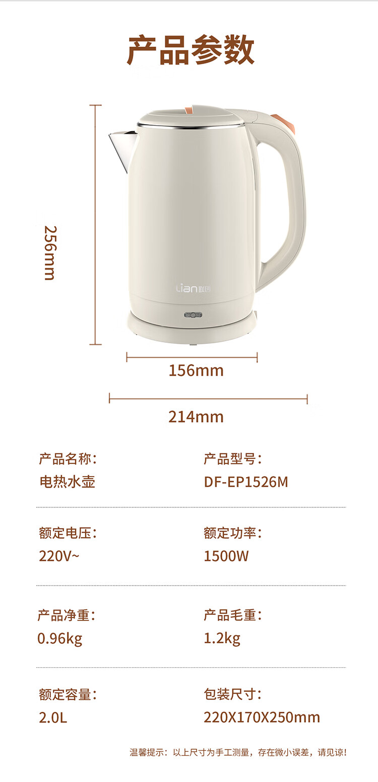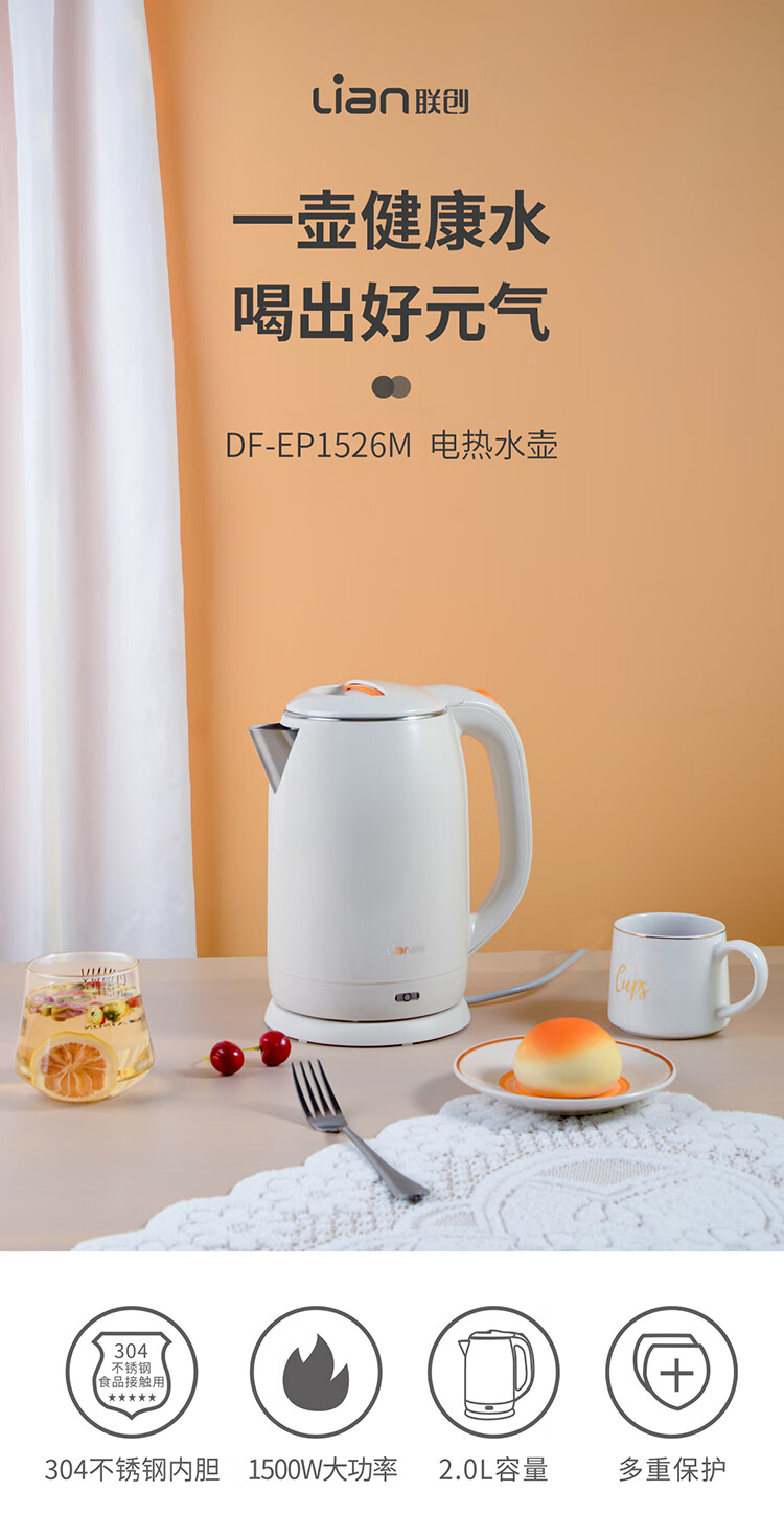 商品名称:联创 DF-EP1526M电热水壶烧水壶2L