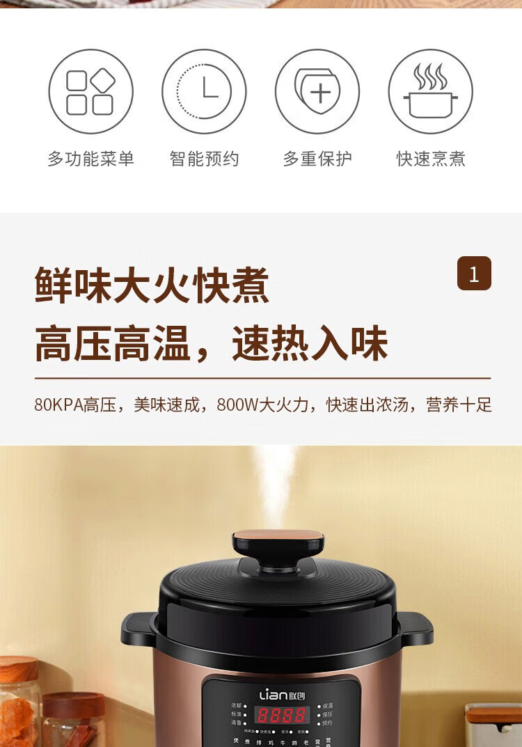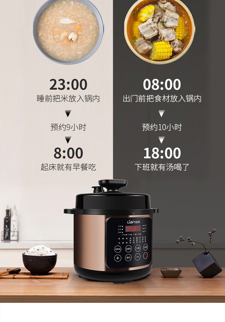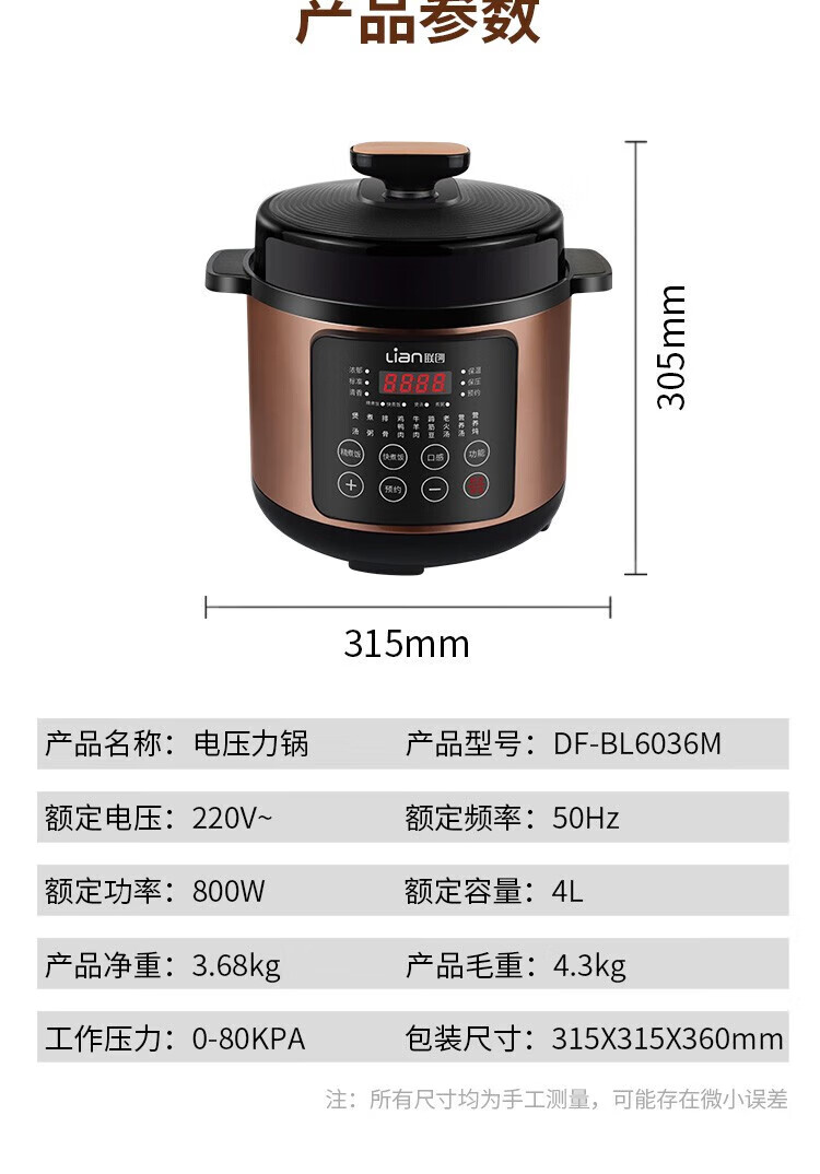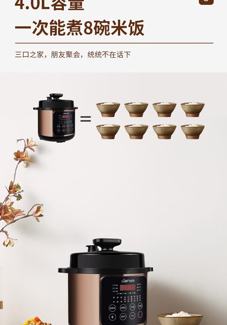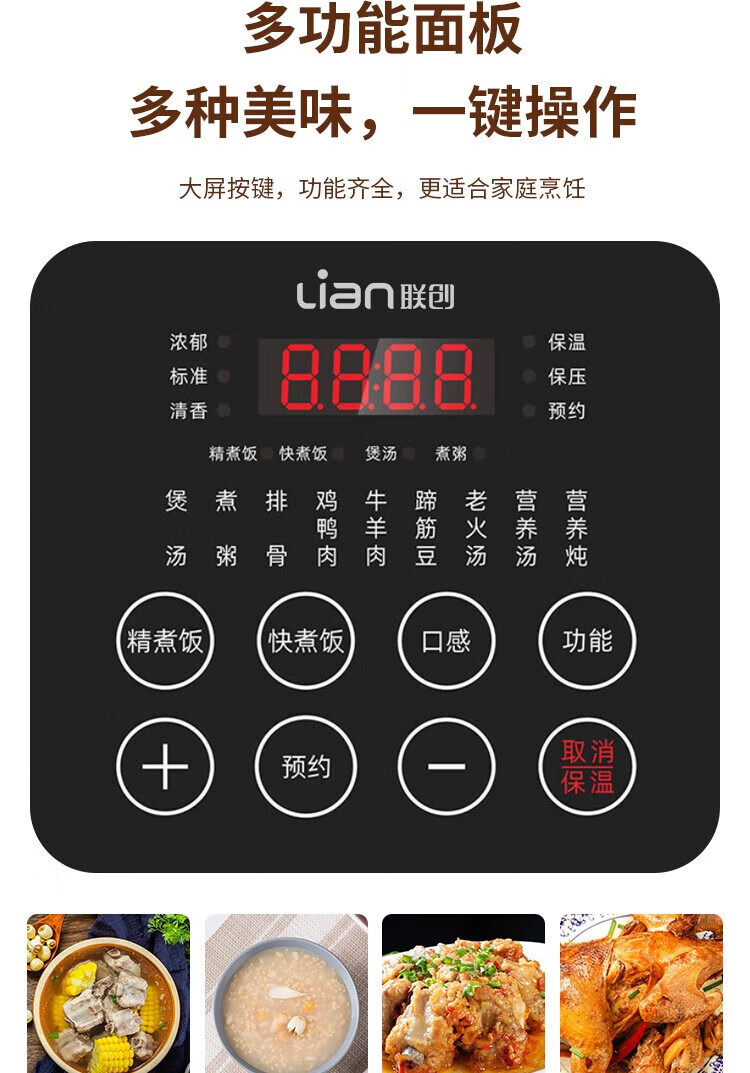 商品名称:联创 4L家用多功能电饭锅 电饭煲不粘内胆 智能预约收汁入味 DF-BL6036M