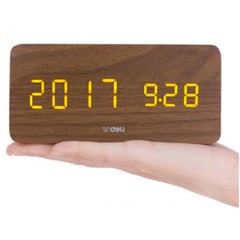 得力 学生用创意小闹钟卧室静音夜光简约数字电子床头时钟智能桌面