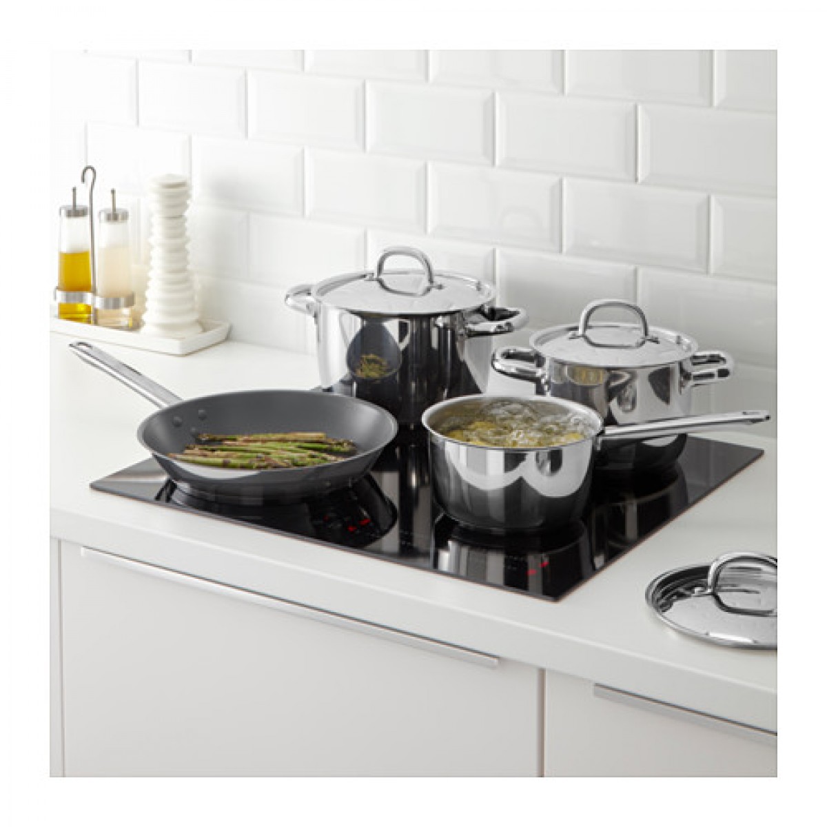 含有: 带盖锅5升,带盖锅3升,长柄带盖炖锅2升,平底煎锅直径 28cm。