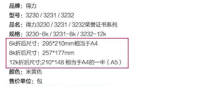 商品名称:得力 荣誉证书内芯 空白可打印 烫金内芯 荣誉证书内页 6K/8K/12K