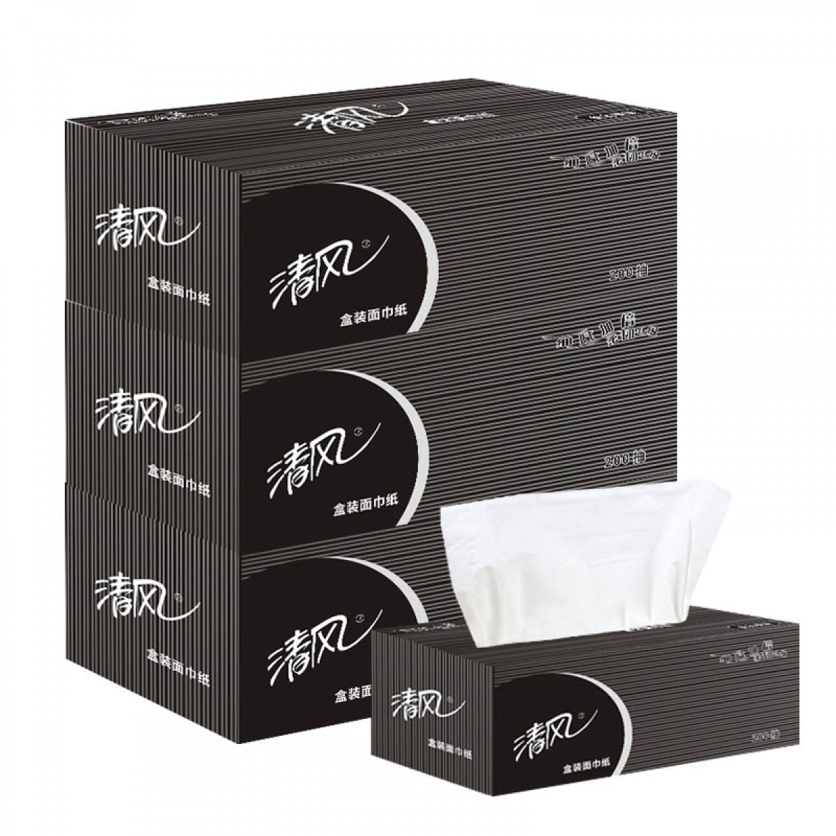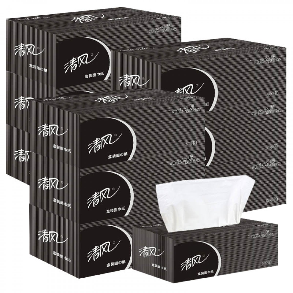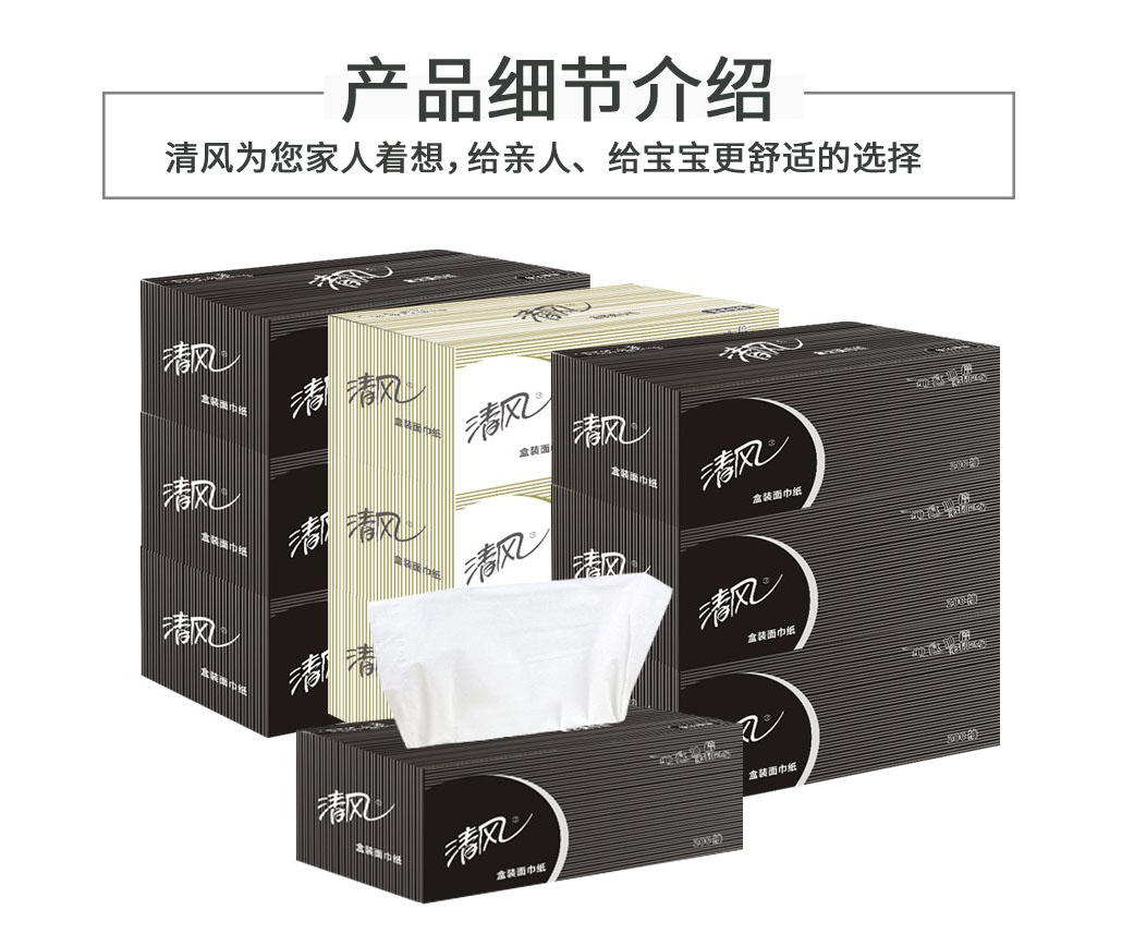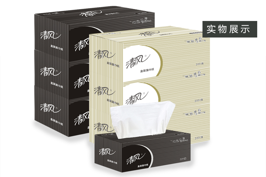 商品名称:清风 盒装面巾纸抽纸商务原生木浆黑白硬盒抽200抽9盒整箱B338A2