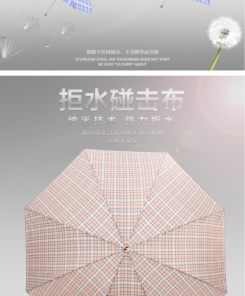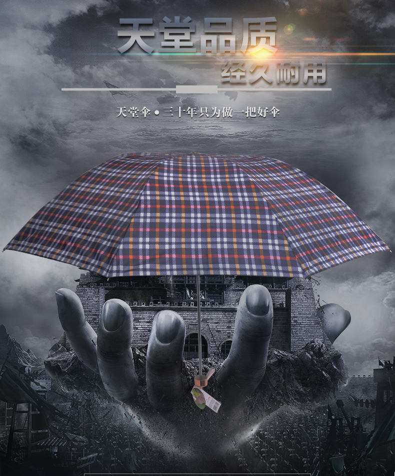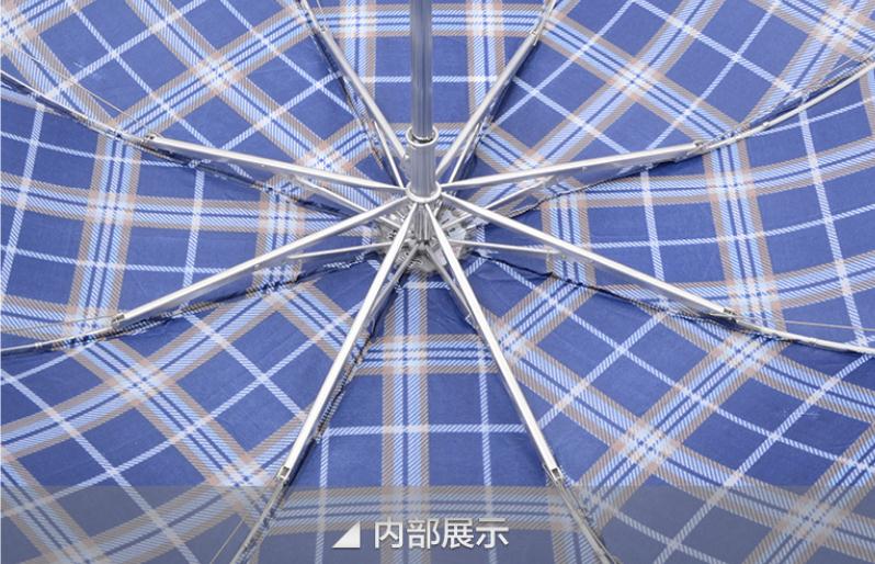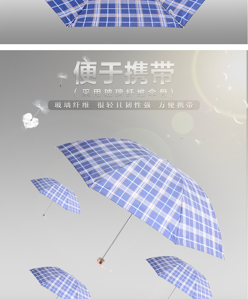 - 商品名称:天堂伞 新款三折叠超轻铝合金玻纤骨八骨拒水格子雨伞 339天格
