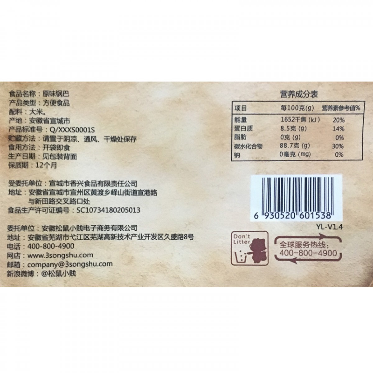 商品名称:三只松鼠 锅巴220gx2袋大米锅巴原味辣味两口味非油炸休闲零食小吃