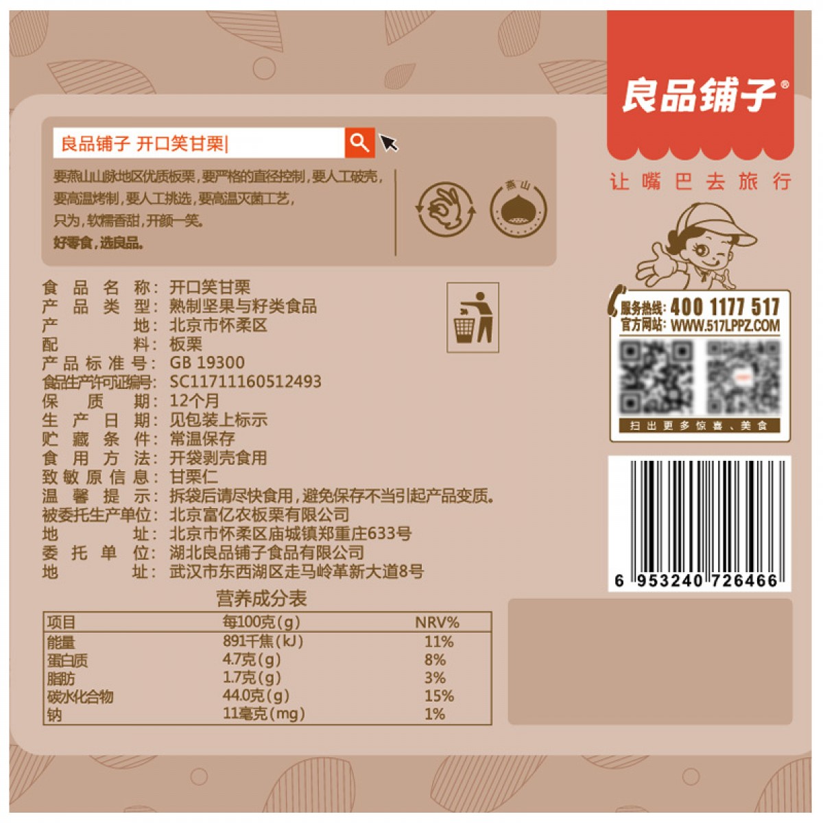 商品名称:良品铺子 开口笑甘栗120g*5袋板栗子坚果炒货干果零食品小吃