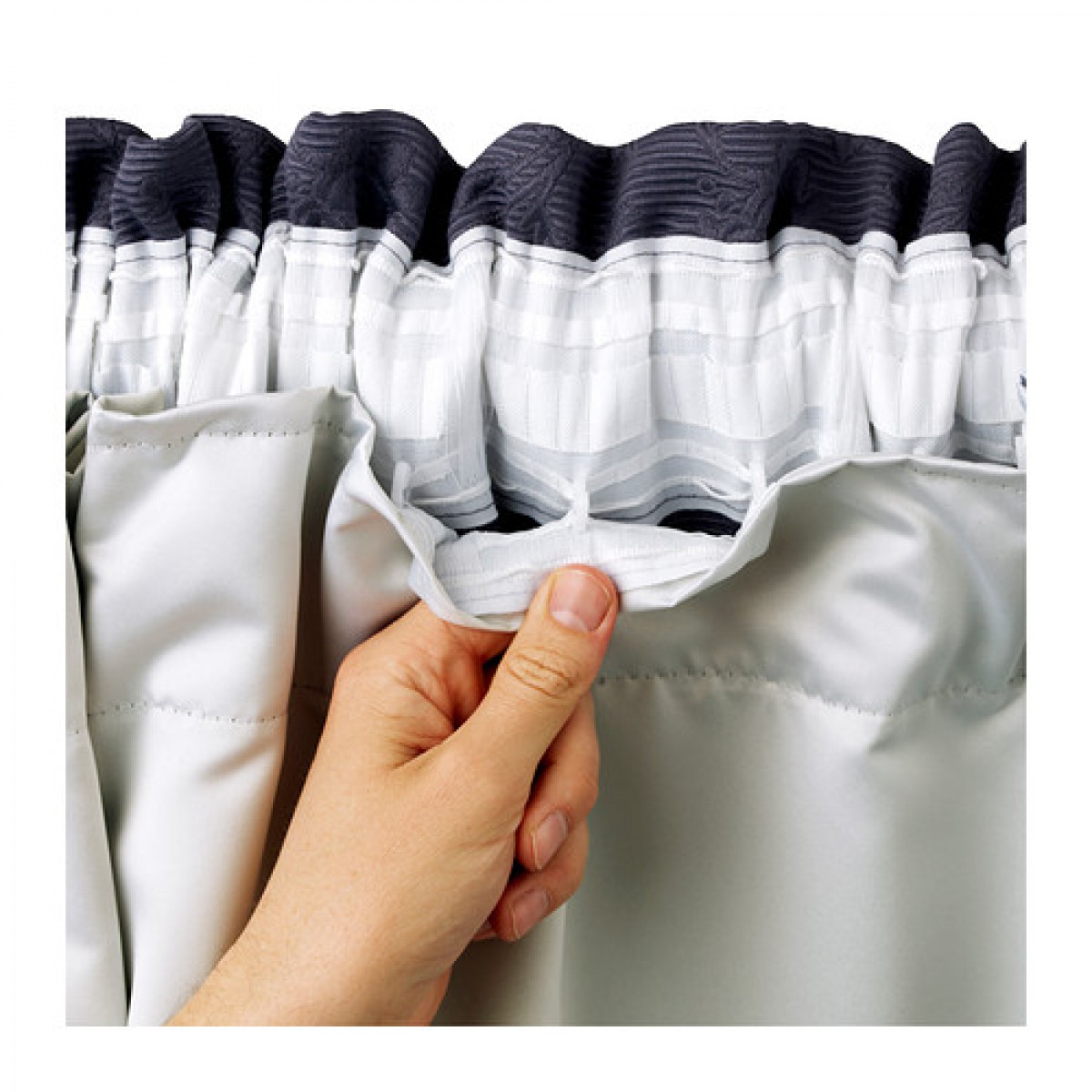 - 您可使用附送的挂钩将衬帘挂到窗帘头带上。