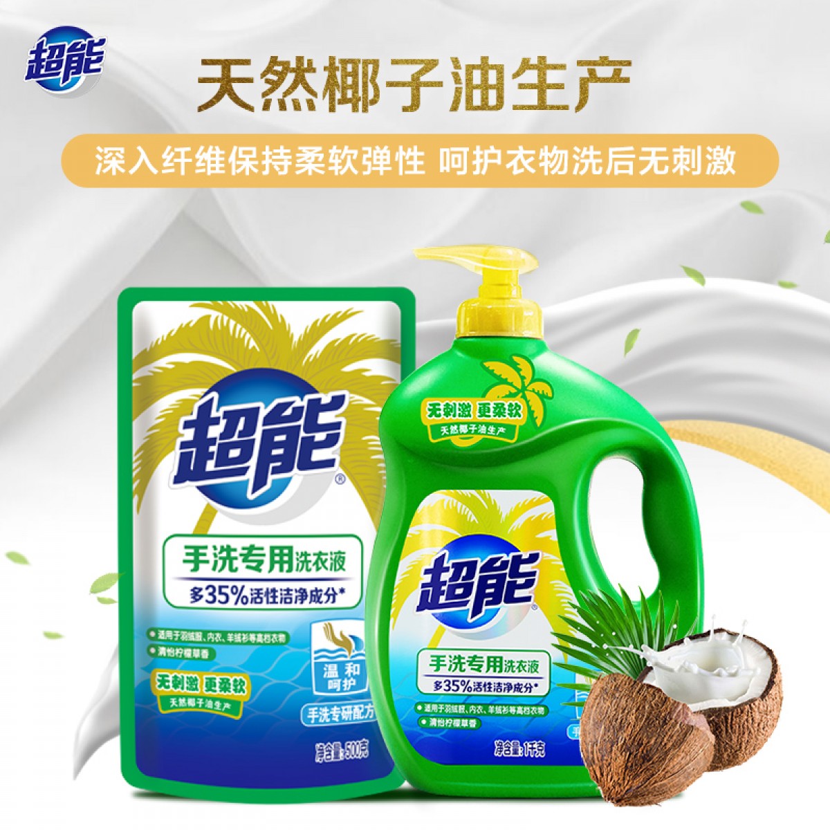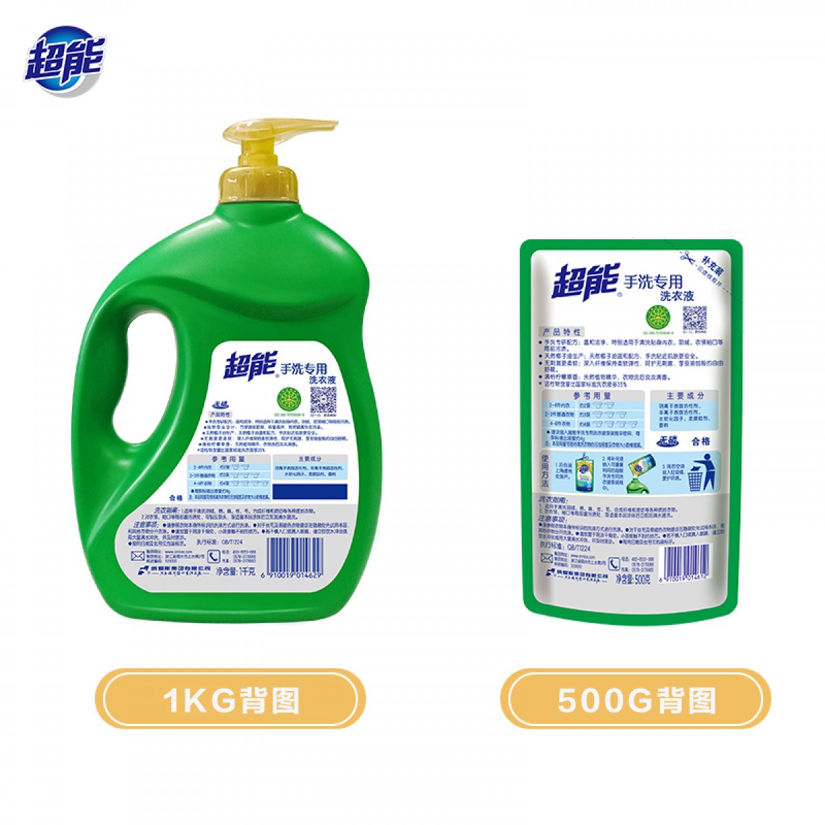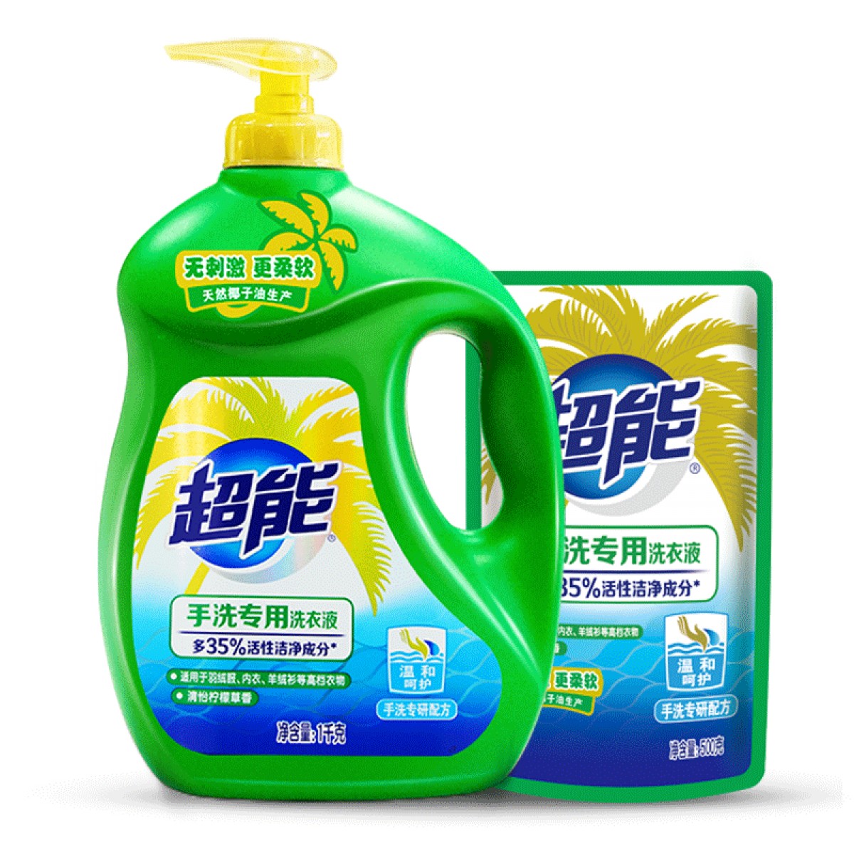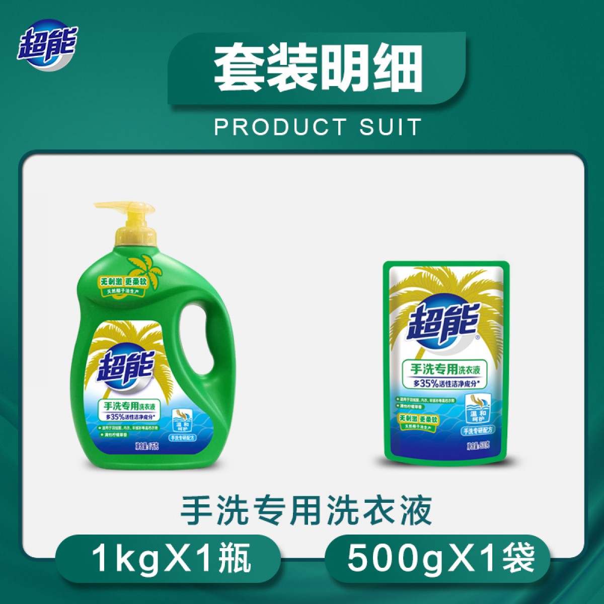 商品名称:超能手洗洗衣液一瓶一袋套组高档衣物专用