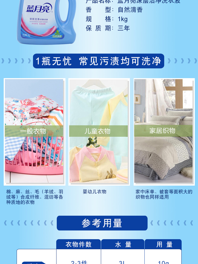 商品名称:蓝月亮 深层洁净洗衣液(自然清香)1kg/瓶