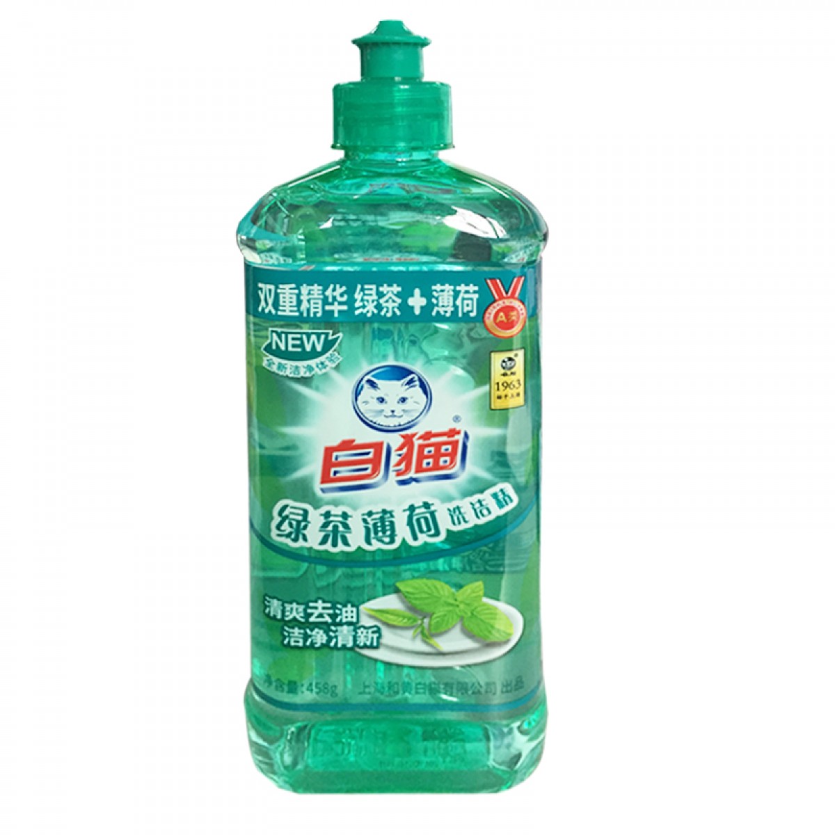 商品名称:白猫绿茶薄荷洗洁精458g双重精华清爽去油洁净清新