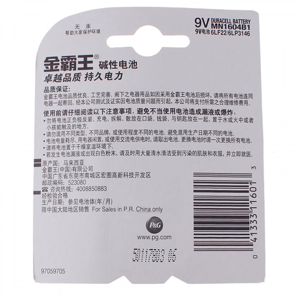 商品名称:金霸王 电池9V碱性方电池6LR61 6F22叠层电池