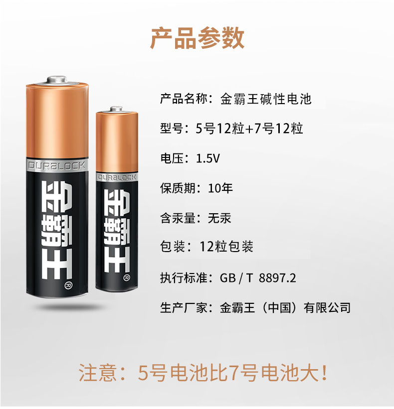 商品名称:金霸王 电池5号12节+7号12节组合套装
