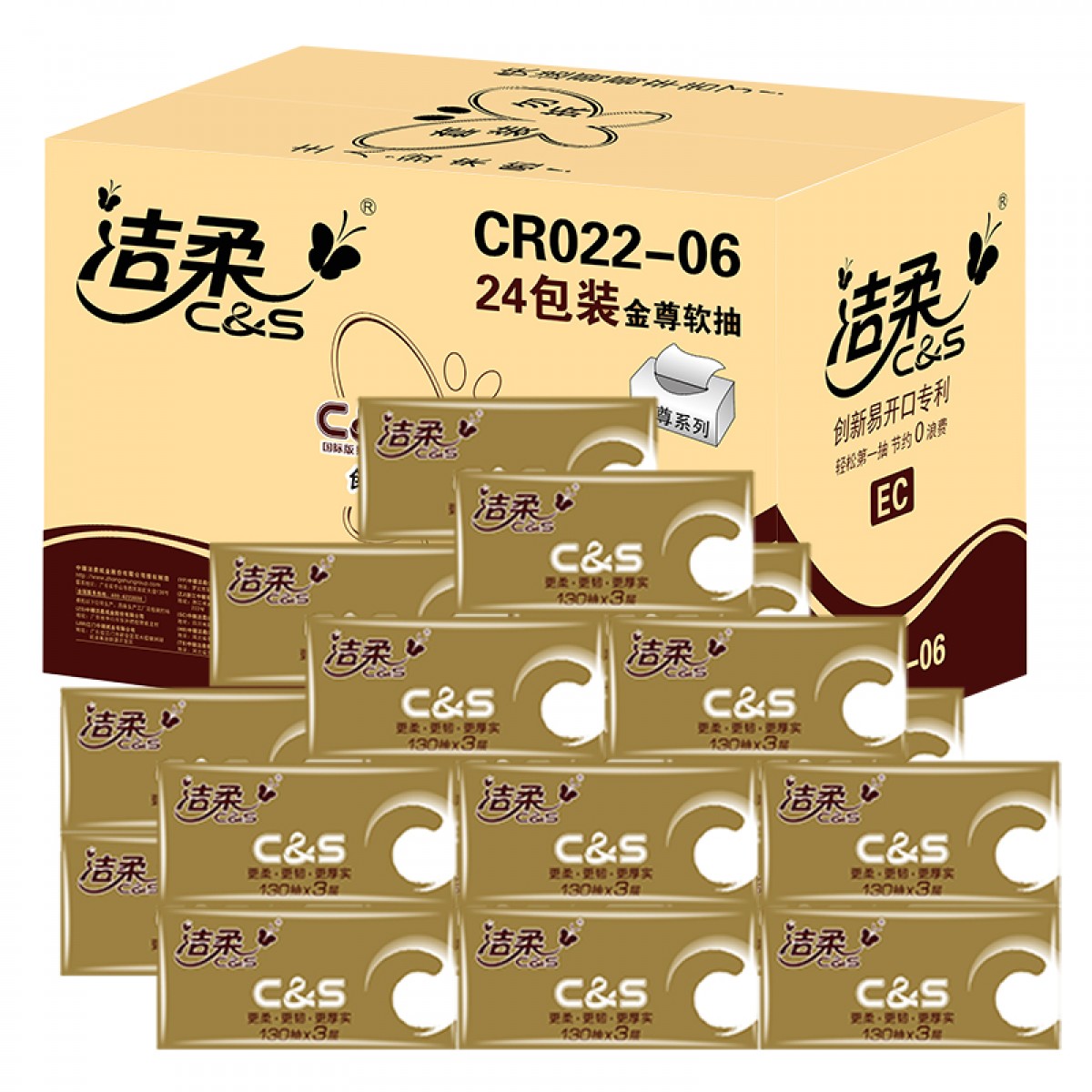 商品名称:洁柔 金尊抽纸3层130抽24包装M号整箱擦手纸纸抽面巾纸