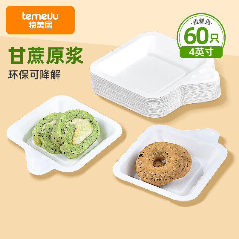 特美居 一次性盘子正方4英寸餐盘可降解纸盘蛋糕盘烧烤野炊碟子60只 单位:组