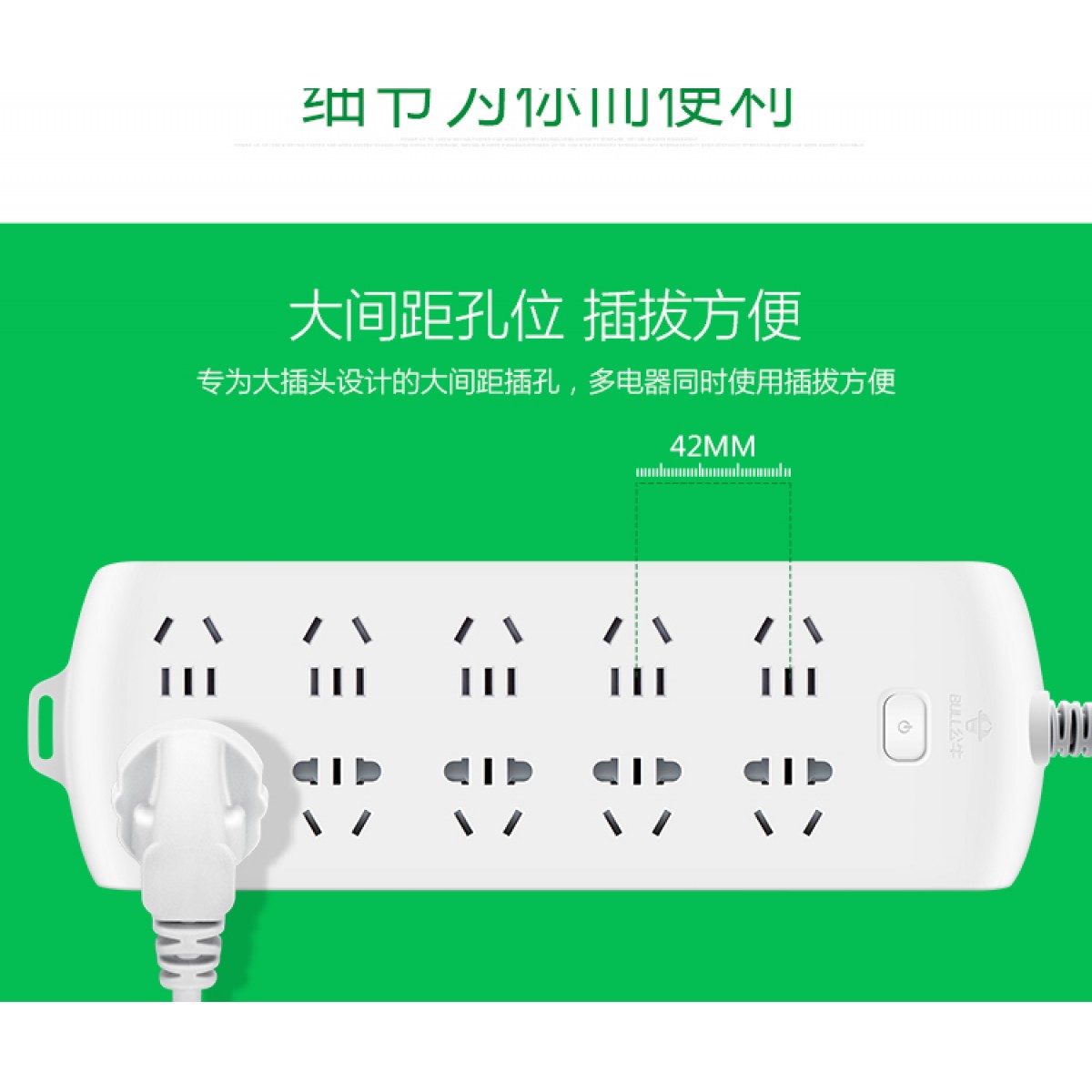 商品名称:公牛 新国标插座/插线板/插排/排插/10位总控 3米 GN-B20A0