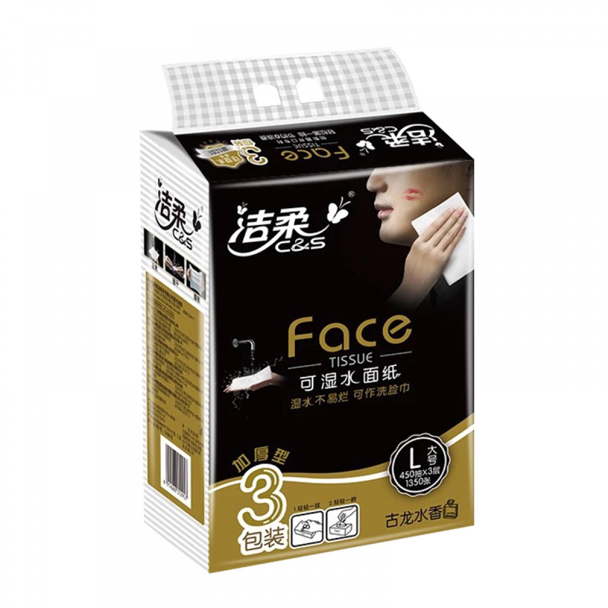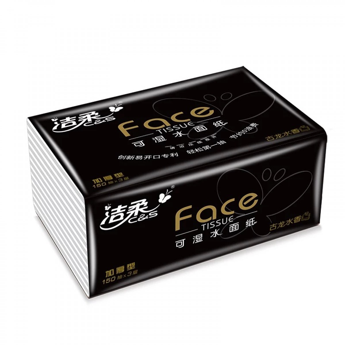 商品名称:洁柔 黑 Face古龙香水味面餐巾纸可湿水加厚150抽3层L大号装3包