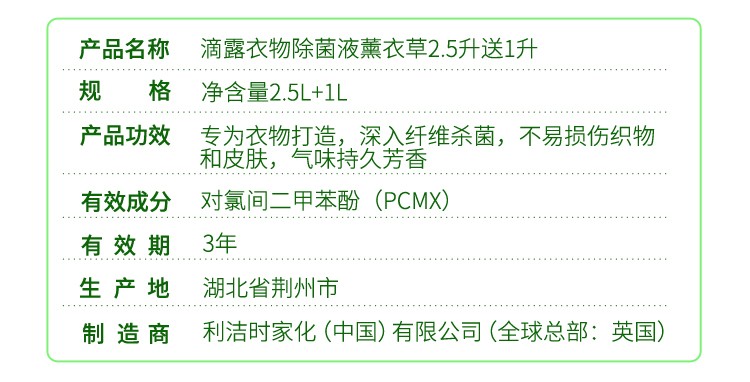 商品名称:滴露 衣物除菌液 薰衣草香型 3.5L家庭装