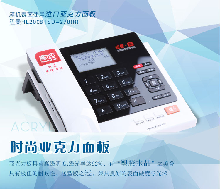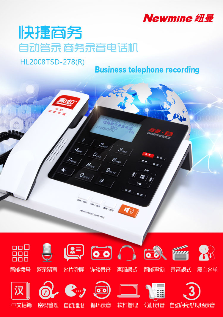 商品名称:纽曼 商务办公录音电话机1120小时 HL2008TSD-278(R)
