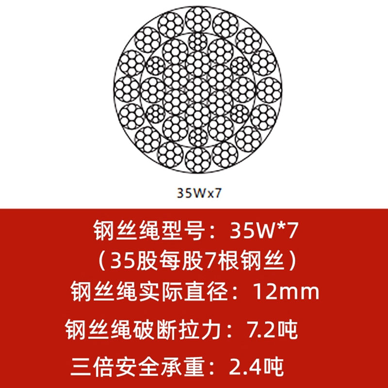 商品名称:晟泰邦 吊车防旋转钢芯油性钢丝绳软35W*7/12mm (15米一卷)单位:米