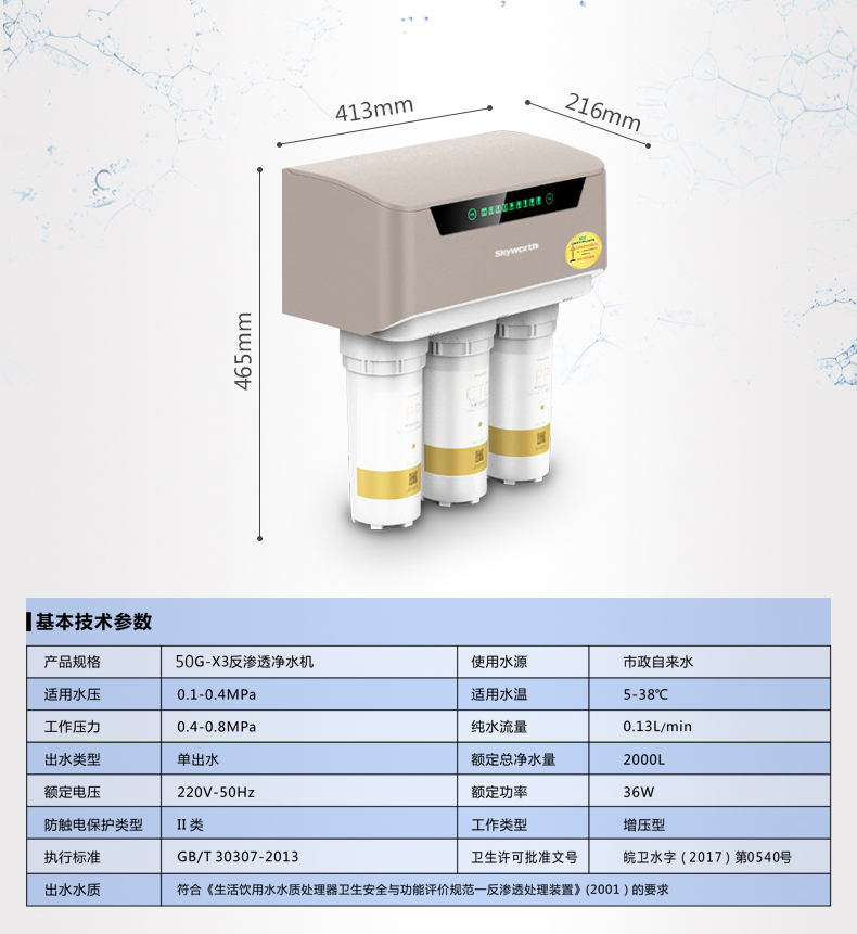 商品名称:创维 反渗透家用净水器直饮纯水机 X3(CW-RO50G)