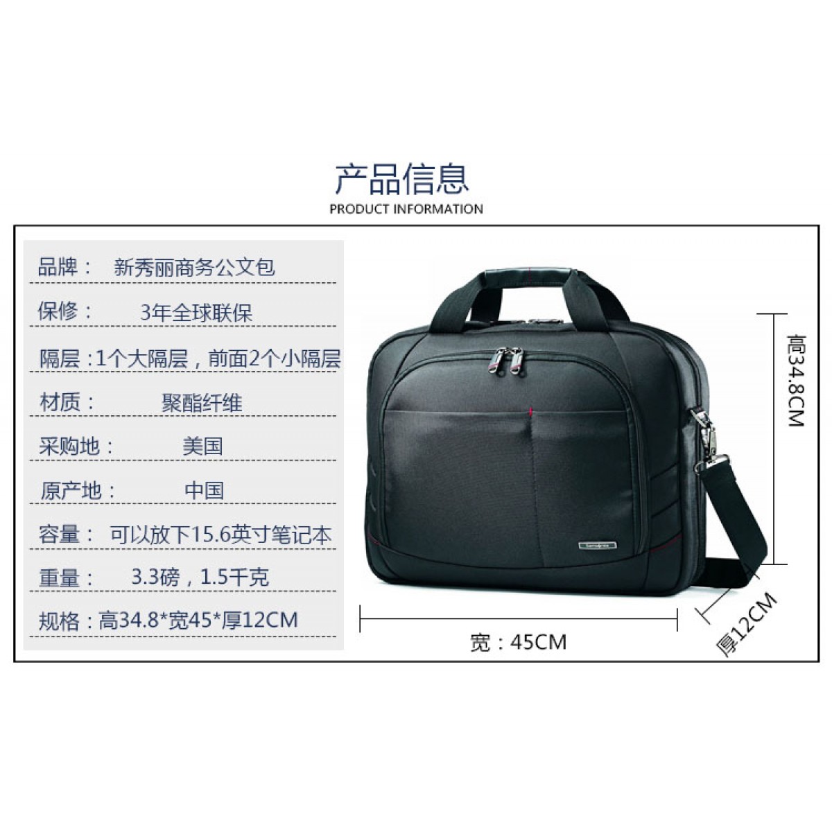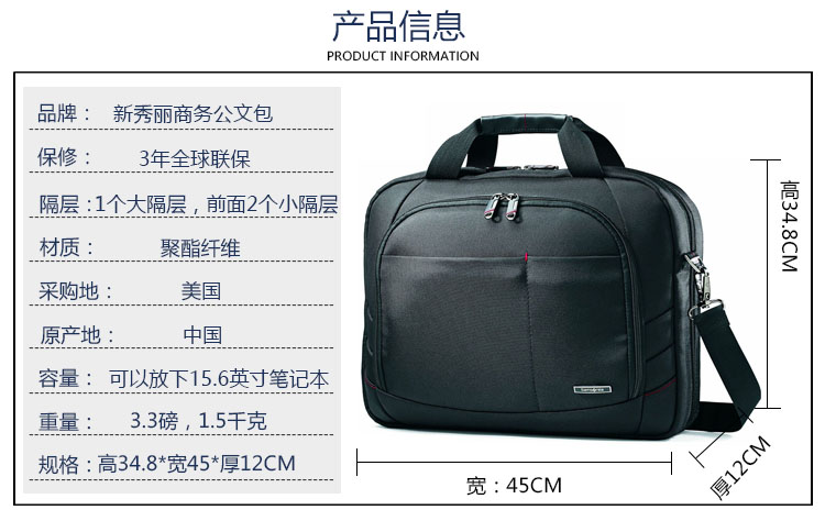 商品名称:samsonite/新秀丽 男包手提包男士单肩包男斜挎包公文包休闲商务电脑包横款包