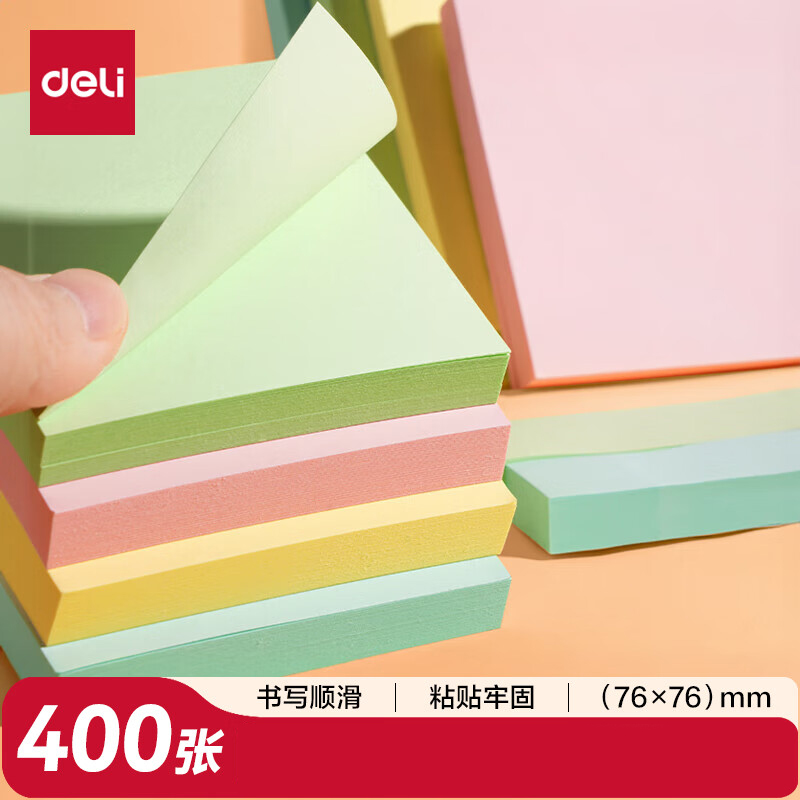 得力(deli)400页4色简约便利贴便签纸76*76mm便签本/记事贴/自粘留言本办公用品BT251 单位:组