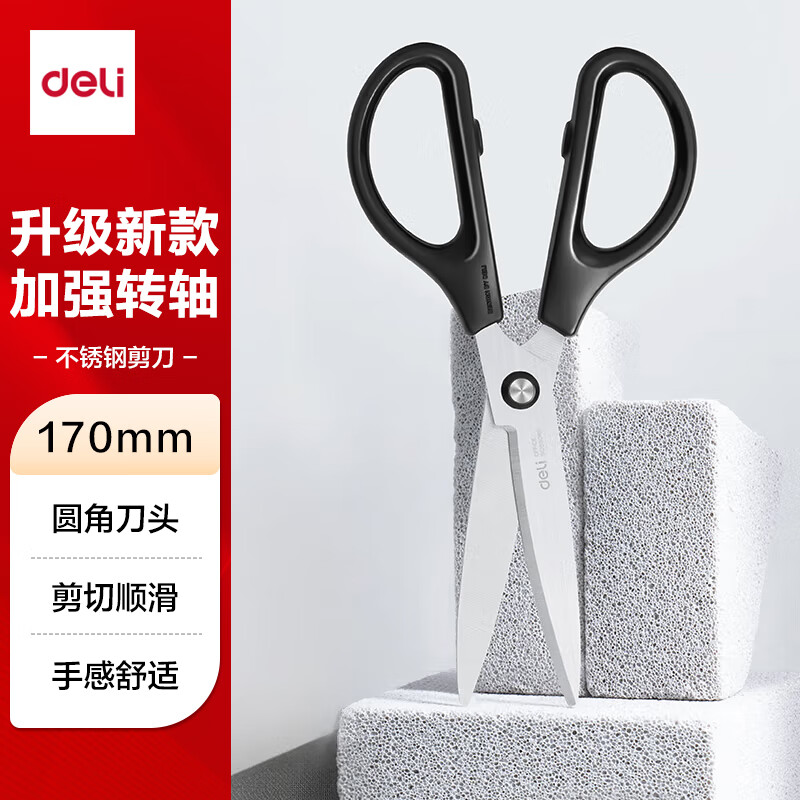 商品名称:得力(deli) 办公生活家用剪刀 小剪子手工剪纸刀 办公用品 黑色6045-ES 单位:把