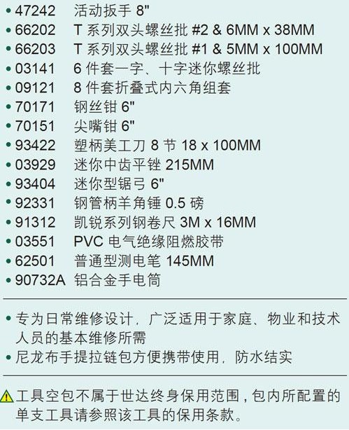 商品名称:SATA/世达 五金维修多功能套装工具包27件套家用基本维修组套 06005