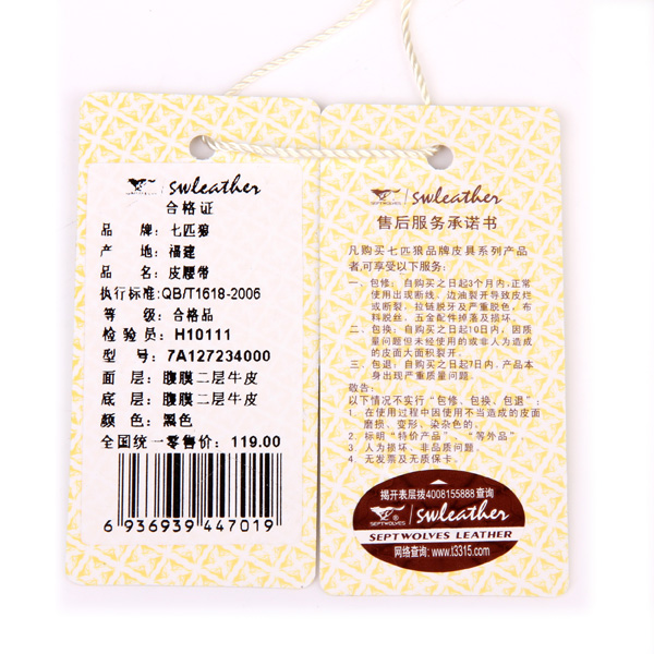 商品名称:七匹狼 男士针扣皮带黑色 牛皮带 腰带 裤带7A127234000