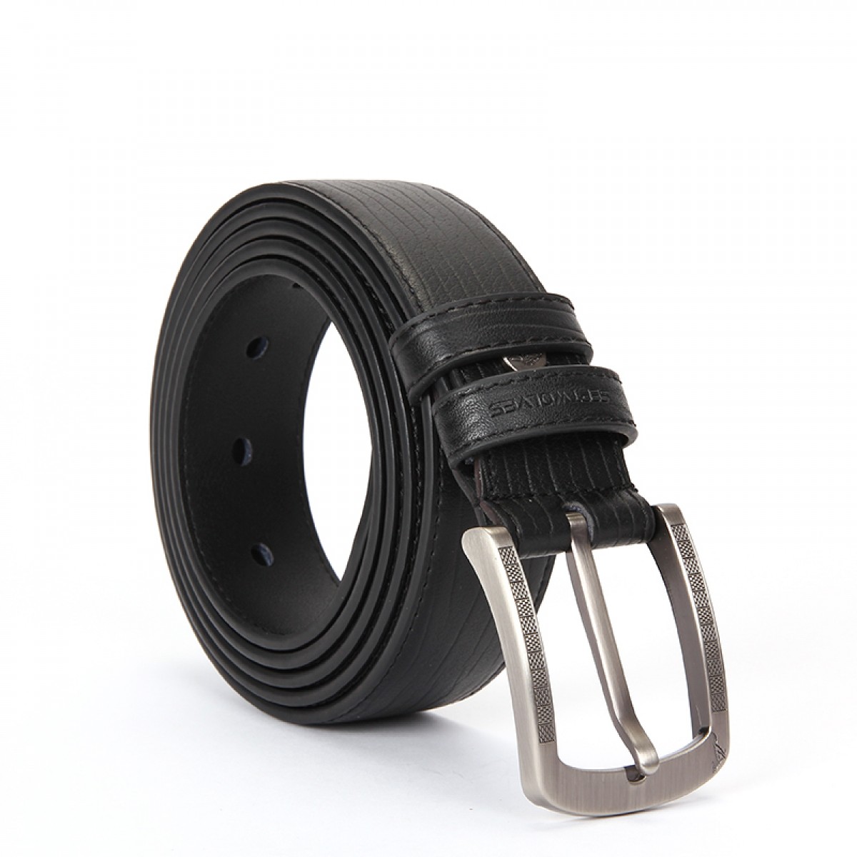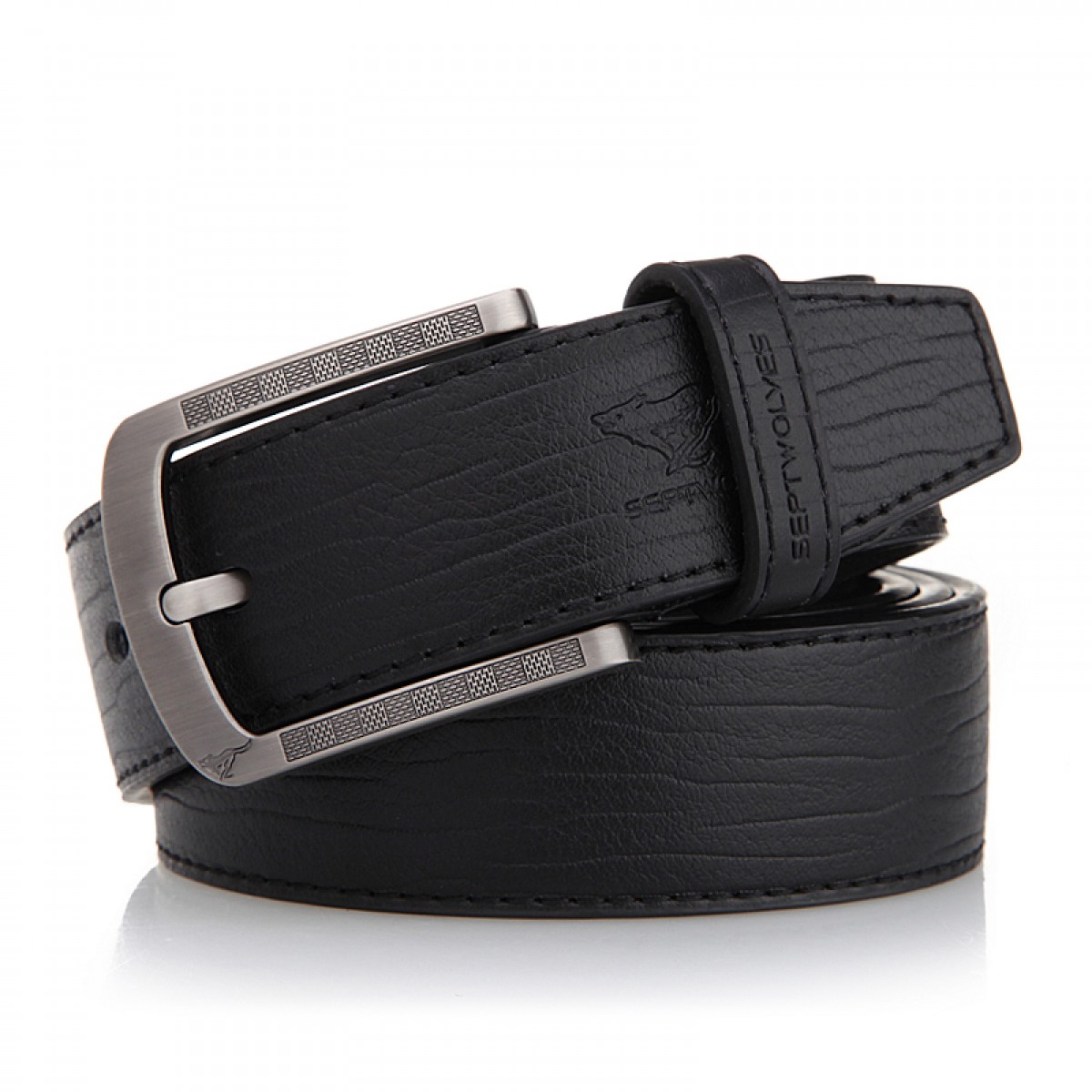七匹狼 男士针扣皮带黑色 牛皮带 腰带 裤带7A127234000