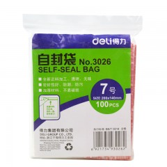 得力 3026自封袋 塑料袋 包装袋 加厚透明夹链袋 100只 200*141mm