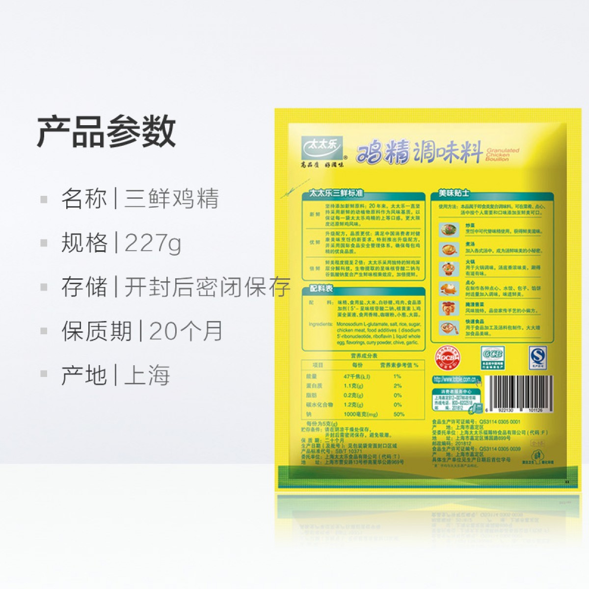 商品名称:太太乐 鸡精227g/袋 厨房调味料三鲜鸡精 替代味精