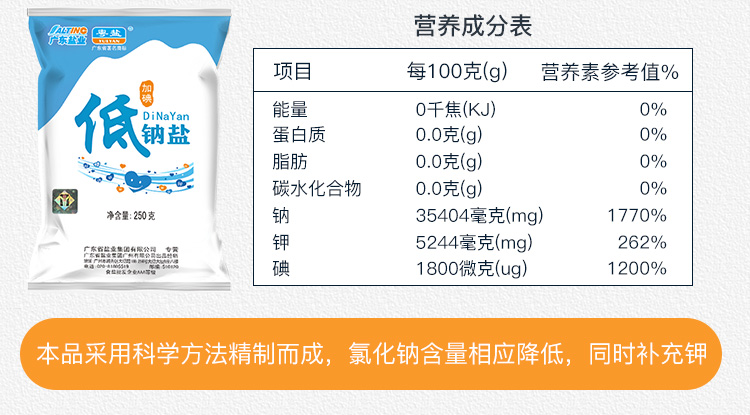 商品名称:粤盐牌 低钠食用盐深井细盐 250g