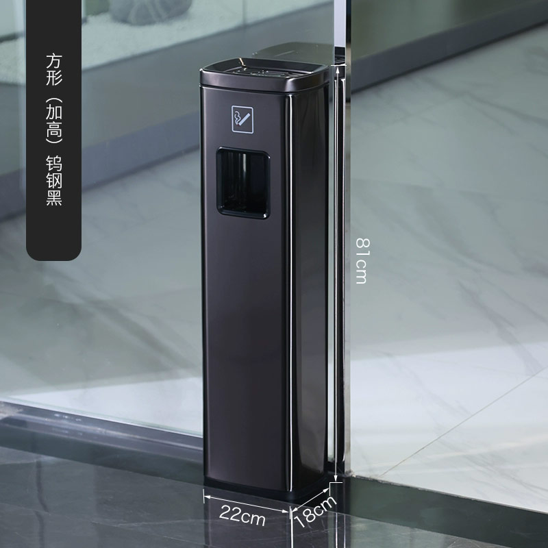 商品名称:蛮曲 不锈钢烟灰桶 立式垃圾桶 方形(加高款)钨钢黑 单位:个