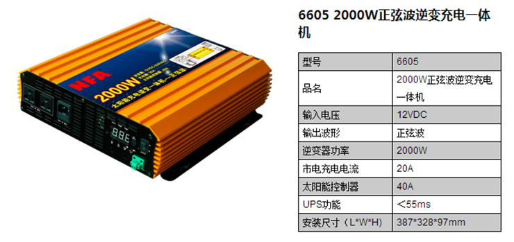 商品名称:NFA/纽福克斯 太阳能电瓶充电器UPS纯正弦波逆变器一体机2000W 12V转220V 6603