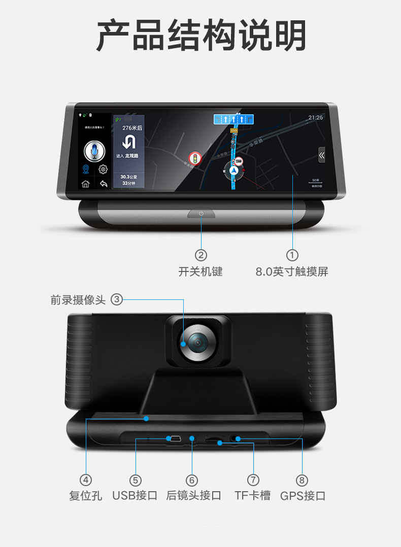 商品名称:凌度 A818中控台新款车载导航行车记录仪双镜头高清夜视360度全景一体