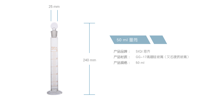 商品名称:思齐 具塞量筒 玻璃量筒 玻璃塞量筒 带盖子 带刻度 实验器材 50ml